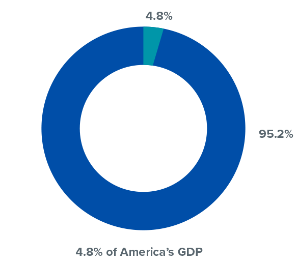 Nearly $340 billion annually is contributed in the form of federal, state, and local tax revenues. This includes more than $181 billion in federal taxes and $90 billion in state revenue.